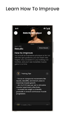 Track your gains, boost your confidence, and stay motivated with Rate My Physique! Upload a photo, and our analysis will help you crush your fitness goals. Whether you're building a new physique or fine-tuning your routine, we’ve got the tools to guide you every step of the way.
