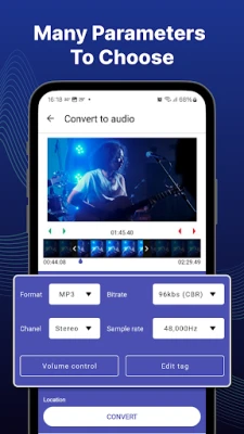 With video to mp3 converter app, you can cut/trim video files and convert video to audio with many options in a few seconds. You can extract high quality songs from video and converting one or more videos simultaneously.
