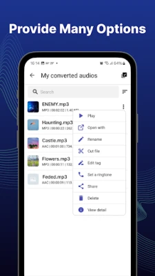 - Easily search and manage all converted audio files, can rename them, view details, share or delete files that are no longer needed.